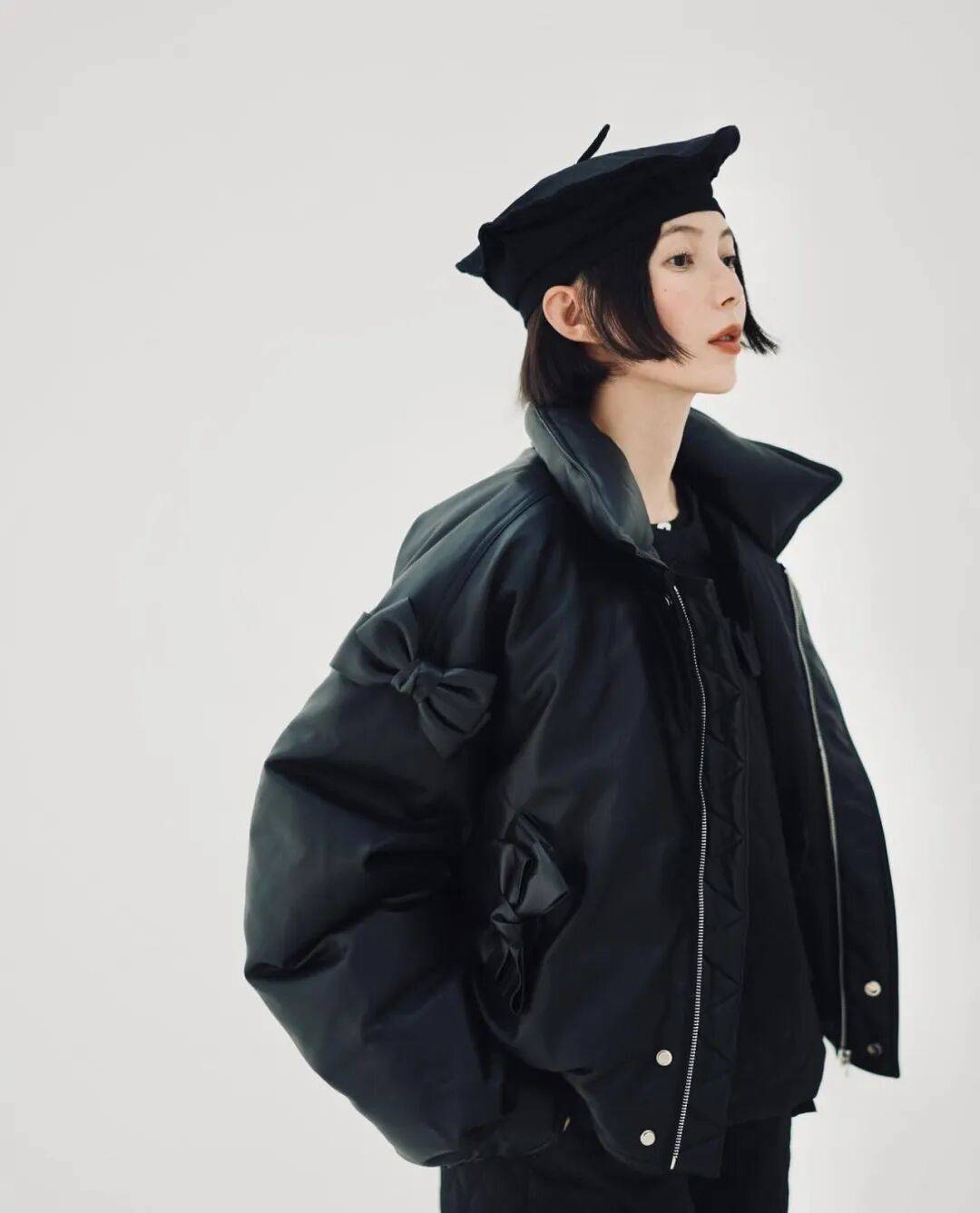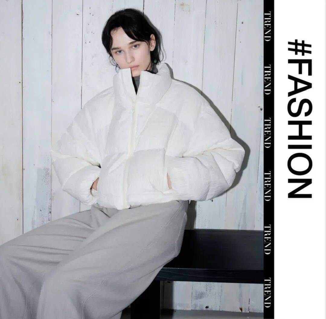 羽绒材质自带的蓬松特性,恰好能完美支撑起茧形的空间结构,二者相辅相成。穿搭上,它既能与紧身裤构成“上宽下紧”的经典法则,也能在长裙下露出裙摆,营造浪漫的层次对比,其自带的建筑感轮廓,让即使是最简单的搭配也瞬间拥有艺术氛围与现代气质。